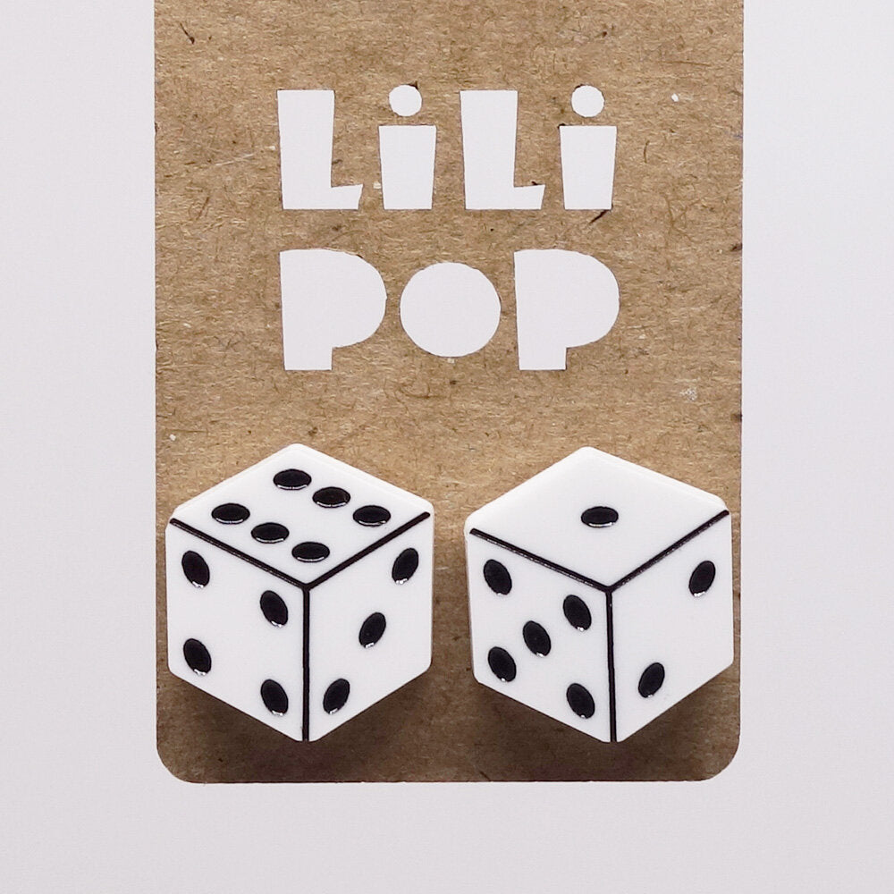 Boucles d’oreilles fabriquées à partir de plastique blanc récupéré, gravé et découpé au laser. Remplissage de peinture noire.