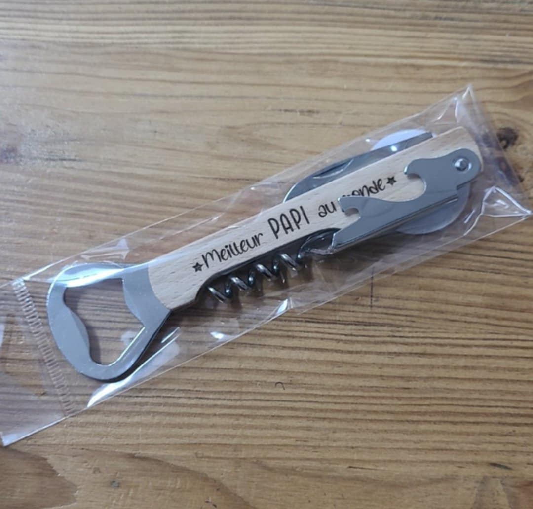 Canif ouvre-bouteille en bois « Meilleur Papi au monde »