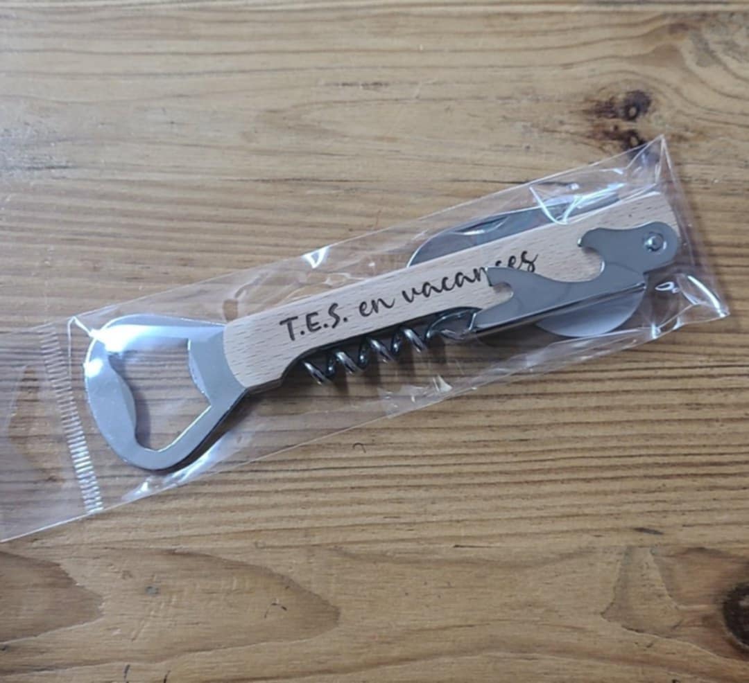 Canif ouvre-bouteille en bois «T.E.S. en Vacances »