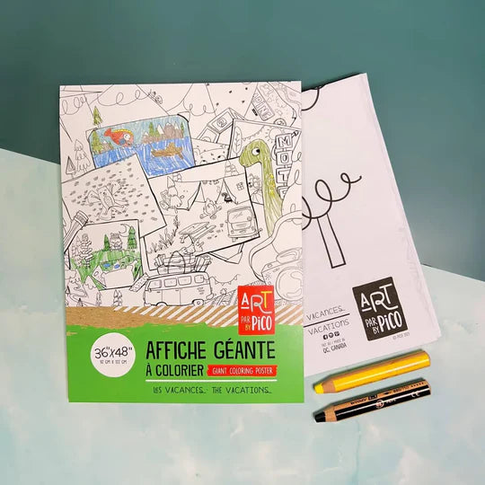 L'affiche géante à colorier Les vacances est l'activité parfaite pour vous suivre dans vos aventures estivales. Camping, pêche, exploration, nature et feu de camp, préparez votre appareil photo et soyez prêts pour l'aventure.