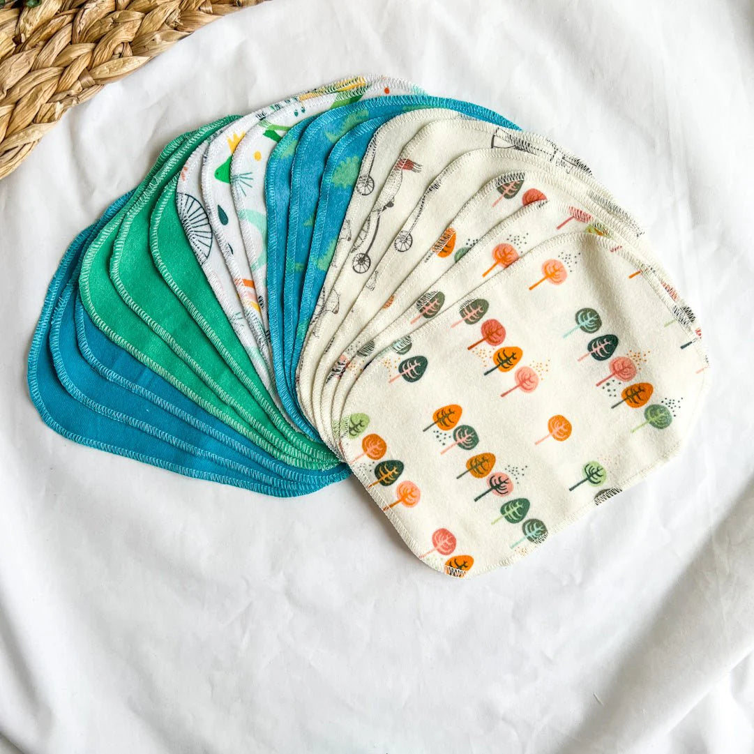 Chaque lingette mesure 5 x 7'' et est composée de 100% flanelle de coton. Les lingettes lavables Marie fil sont fabriquées avec amour dans notre atelier à Québec.