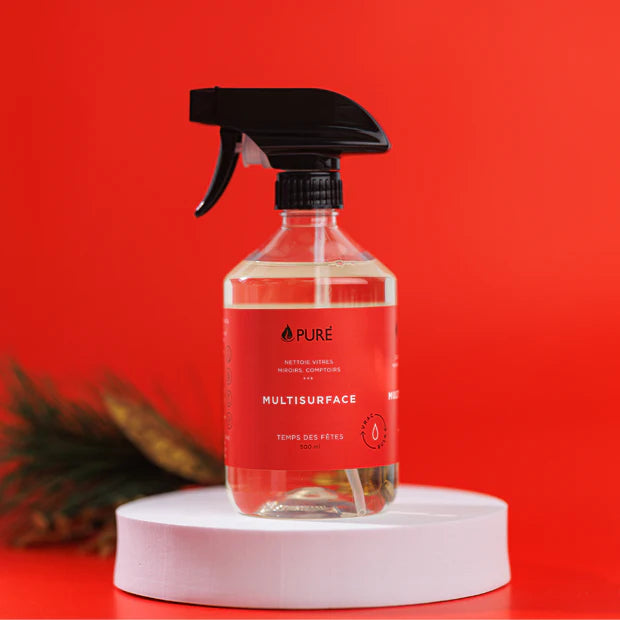 En collaboration avec oNature, le nettoyant Multisurface Temps des fêtes a un arôme à la fois traditionnel et festif de canneberges, de pin avec une touche de cannelle. 🍬 Gros coup de cœur pour le Multisurface Pure. Il est super efficace. Il fait briller les miroirs et les vitres. Il fait étinceler les surfaces vernies, le bois. Il nettoie sans traces les écrans d’ordinateur, de téléphone et les lunettes. 👓