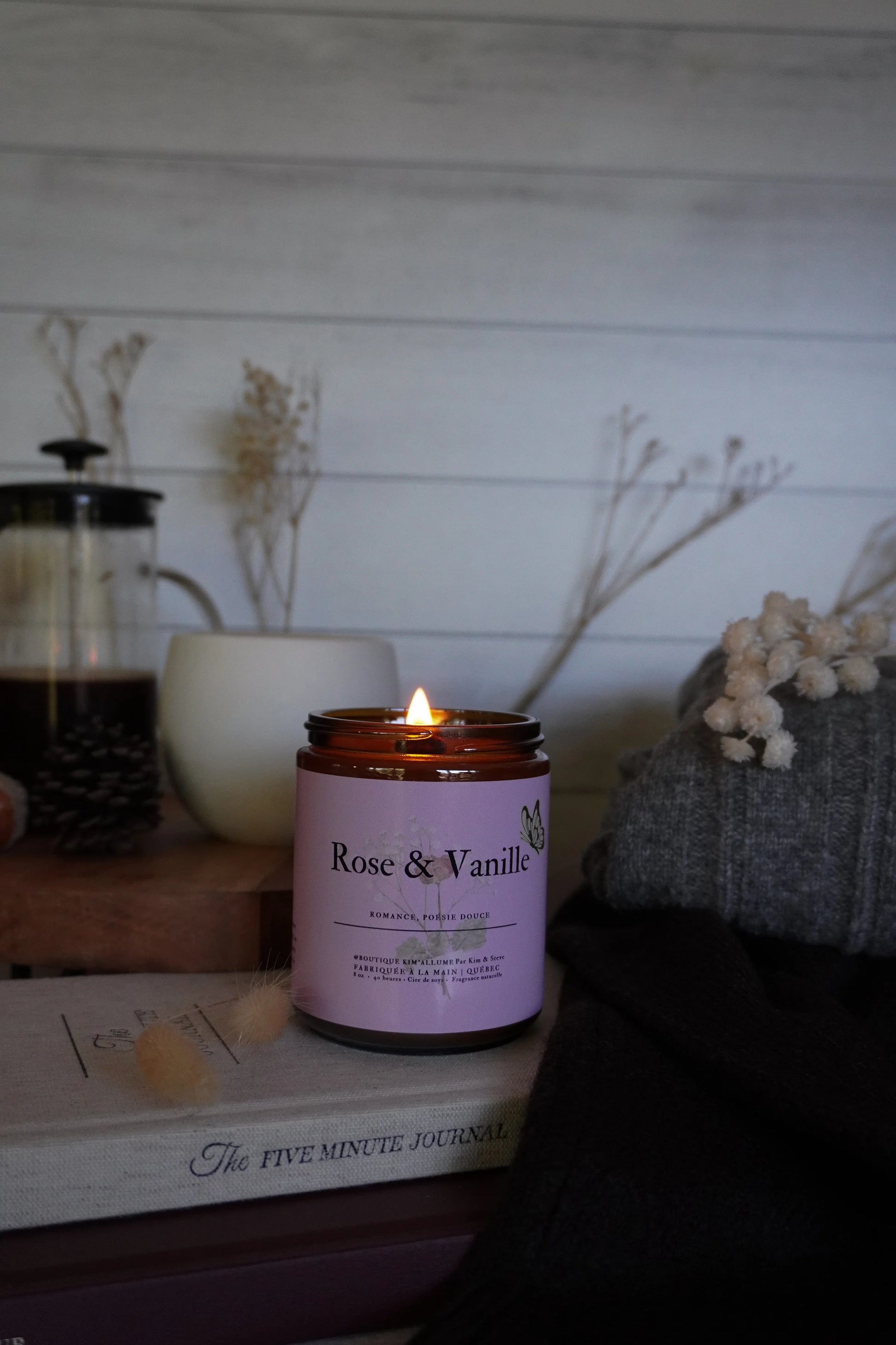 Rose Vanille évoque la douceur d’un amour naissant, la tendresse d’un regard échangé au détour d’une rue. Une bougie pour les cœurs sensibles, les rêveries parfumées, les fins de chapitres qu’on relit en secret.