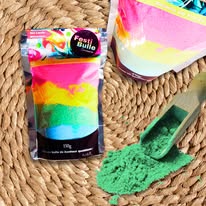 Ingrédients : Magnesium sulfate, sodium bicarbonate, zea mays starch, sodium lauryl sulfoacetate, lac powder, potassium acid tartrate, butyrospermum, parkii shea butter, avuna sativa, parfums (sans phtalates ni parabens), bleu 1 lake, rouge 40 laka, jaune 6 lake.