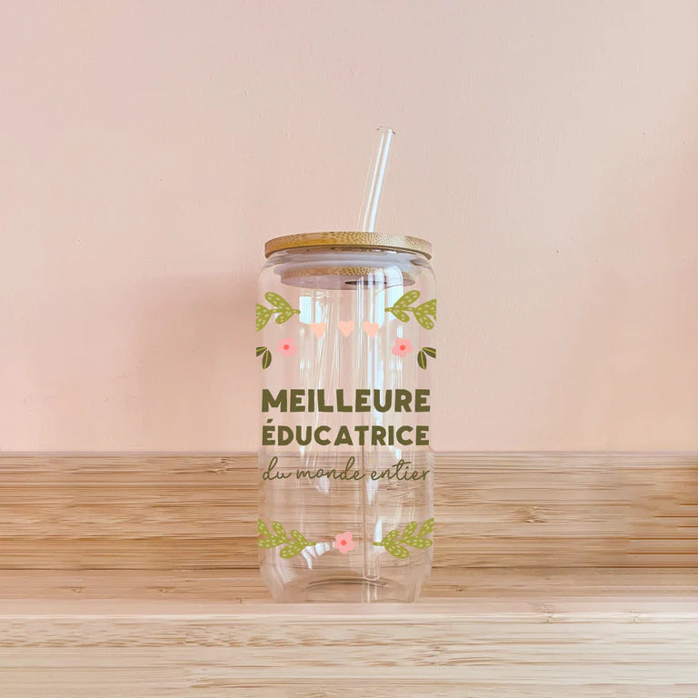 Offrez un verre illustré rempli de douceur et de reconnaissance à celle qui a tant donné cette année. Parfait pour dire merci à une éducatrice exceptionnelle, ce verre unique allie utilité et esthétisme. Chaque illustration est pensée pour faire sourire et rappeler à quel point son travail compte. Idéal pour le café glacé du matin, ou le verre d'eau de l'après-midi...ou un petit moment bien mérité à la fin de la journée 🍎